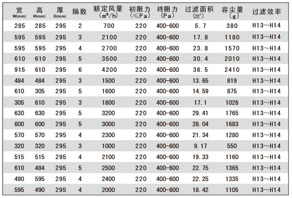 1.耐高濕有隔板高效過濾器主要用于過濾0.3um以上的空氣懸浮顆粒,作為各種過濾系統(tǒng)的末端過濾。